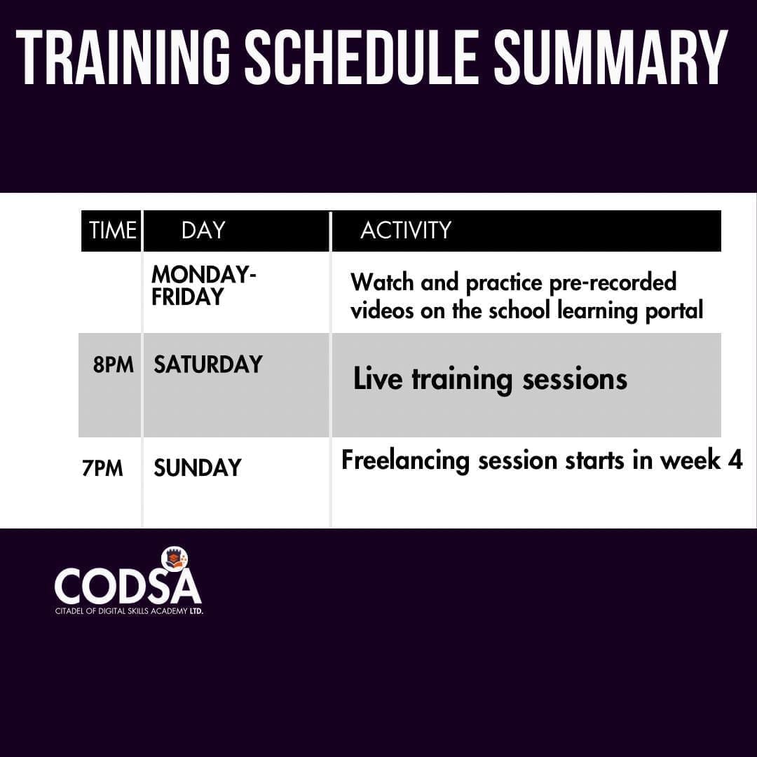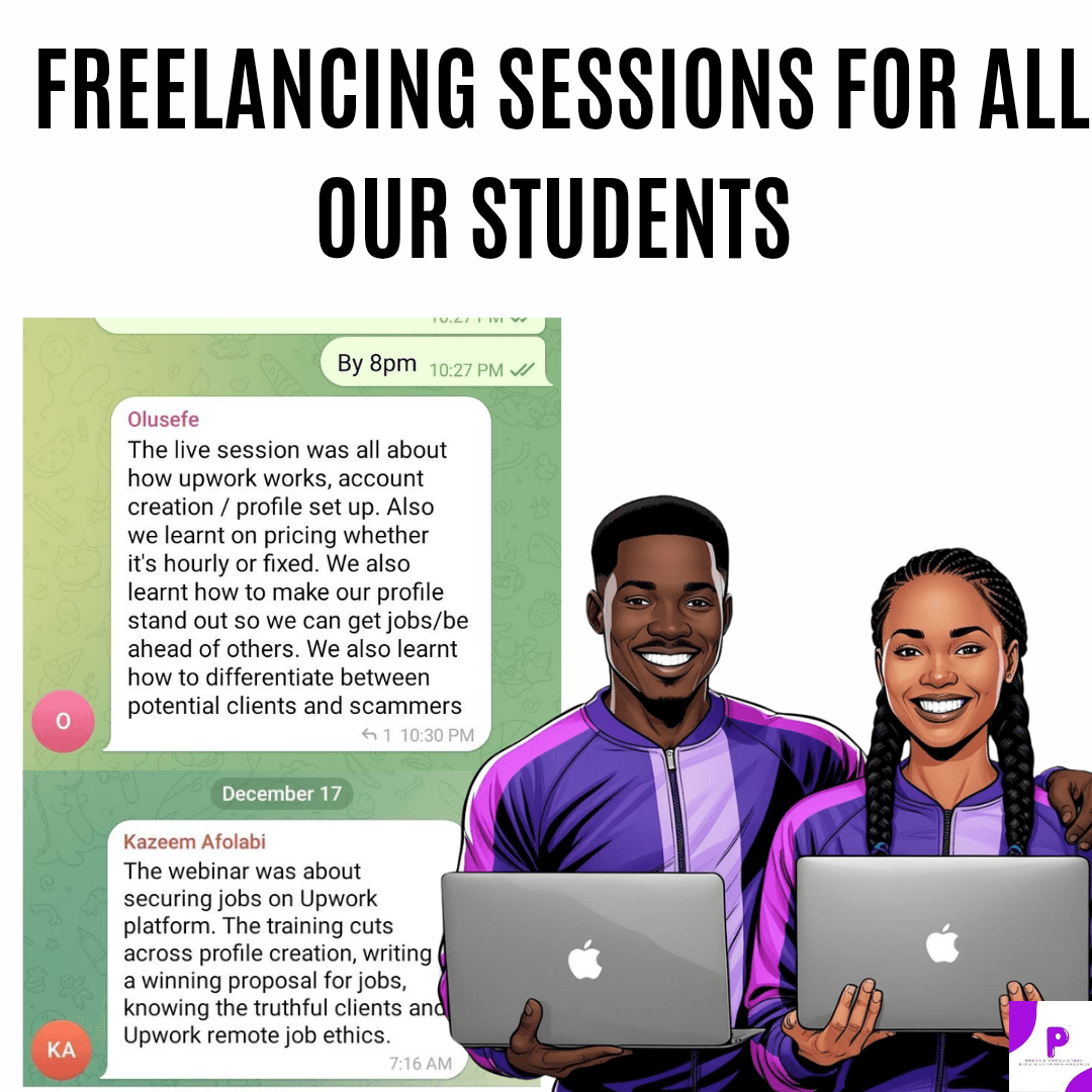 3) On Sundays, we have 2 hours of Upwork freelancing training at 8pm to 10pm. It's also a live class, you will learn how to create an account on Upwork, write winning proposals, apply for jobs, etc.