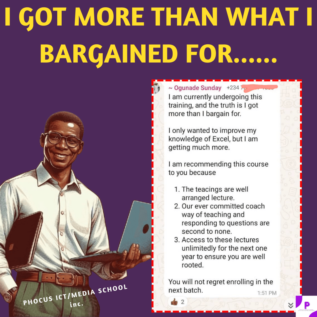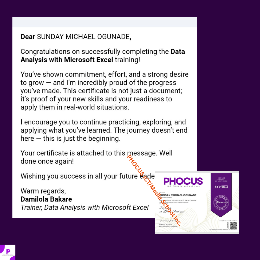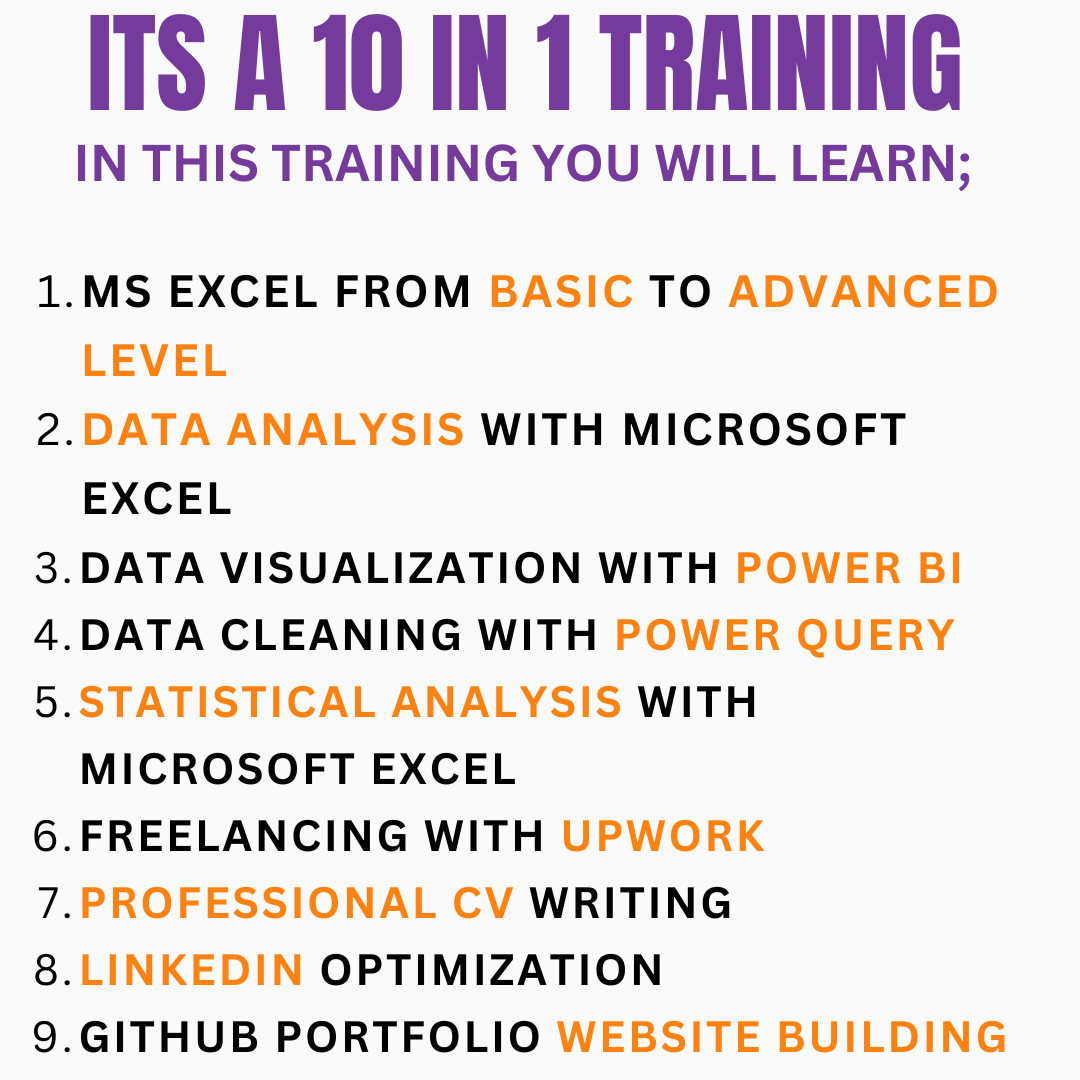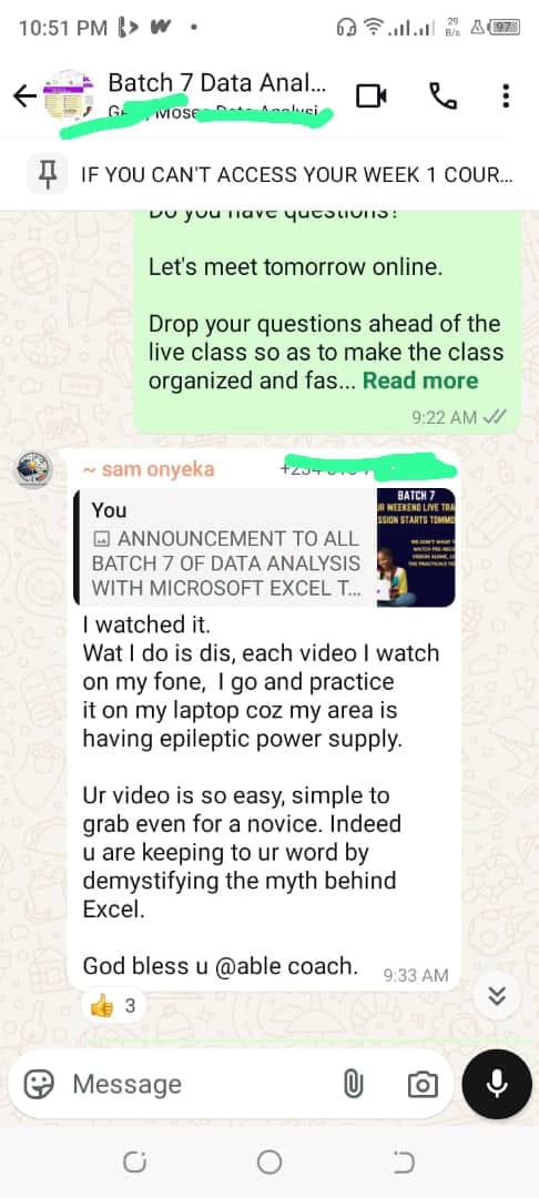 In this 8 weeks intensive and simple training in Data Analysis with Microsoft Excel, you wil be using 3 platforms for your learning.